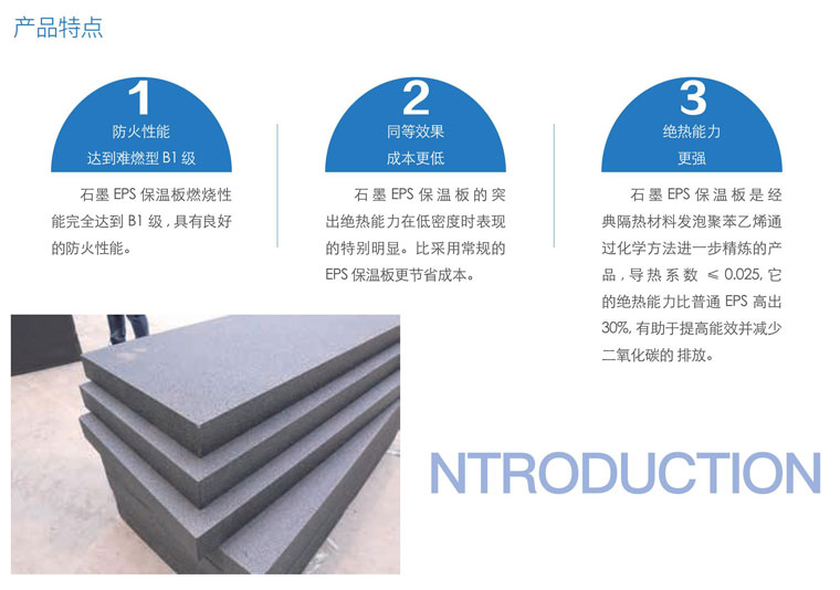 為 滿(mǎn) 足 新 的 建 筑 節 能 要 求 ( 建 筑 節 能 7 5 % ) , 在 傳 統 EPS聚苯板生產(chǎn)的基礎上,公司經(jīng)過(guò)多年的研發(fā)和試驗,成功 研發(fā)出了**新墻體保溫材料——C〇2石墨聚苯板,該產(chǎn)品導 熱系數低于〇.〇24W/m<,具有高熱阻、低線(xiàn)膨脹率、保溫 效果好、尺寸穩定性好等獨特性能,實(shí)現了建筑外墻同等保溫 效果厚度**低,大大減少了建筑墻體厚度,從而增加室內使用 空間,減輕了墻體的荷載。C 0 2石墨聚苯板的問(wèn)世,使保溫 板在環(huán)保保溫、隔熱以及建筑節能等方面提高到了一個(gè)新的臺 階。